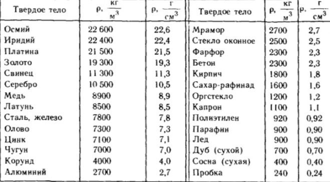 Какое из этих веществ при массе 1 кг имеют меньший объем?
