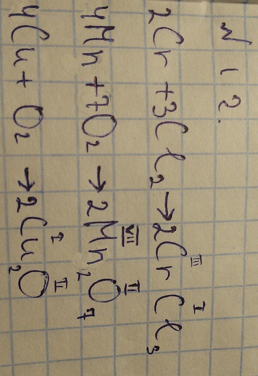 Задание: составьте хим. формулы соединений: хлорида хрома(3), оксида марганца(7), оксида меди(1)
