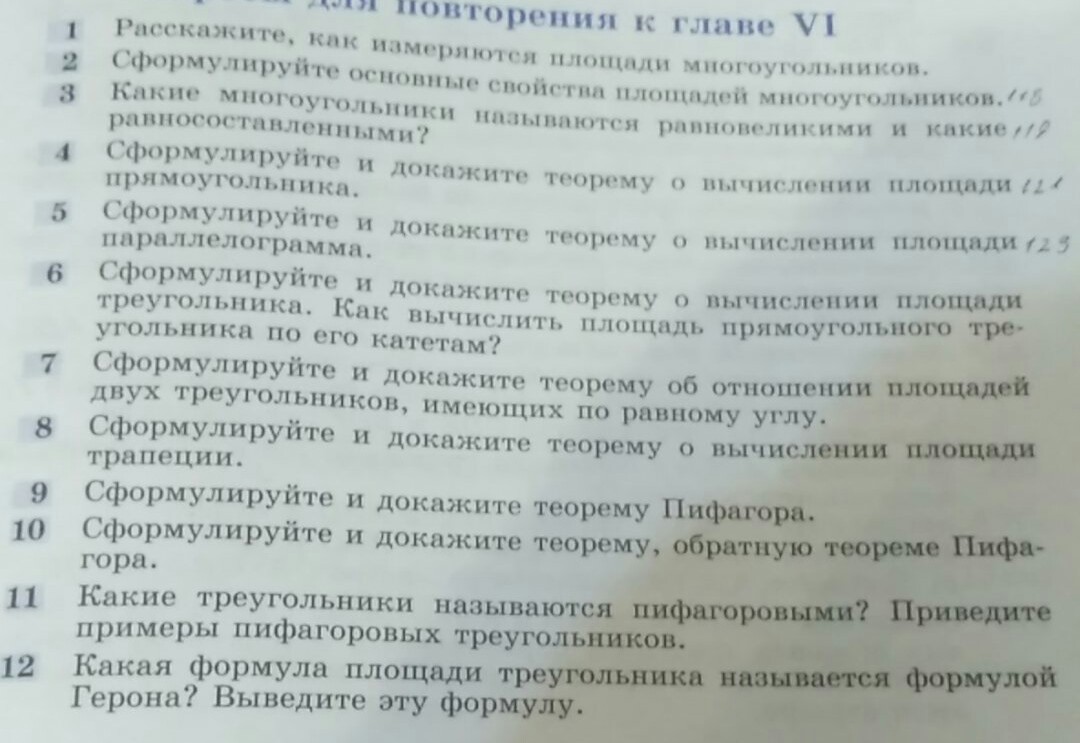 6. Пусть ABC - прямоугольный треугольник с прямым углом B. AB=a, BC=b. Достроим фигуру до прямоугольника ABCD. Значит AD=BC=b и AB=DC=a. Пусть AC - диагональ прямоугольника ABCD. Тогда треугольник ABC=треугольнику CDA (по двум сторонам a,b и углу между ними). Отсюда следует что площади этих треугольников равны => Площадь прямоугольника ABCD = (площадь треугольника ABC) * 2.