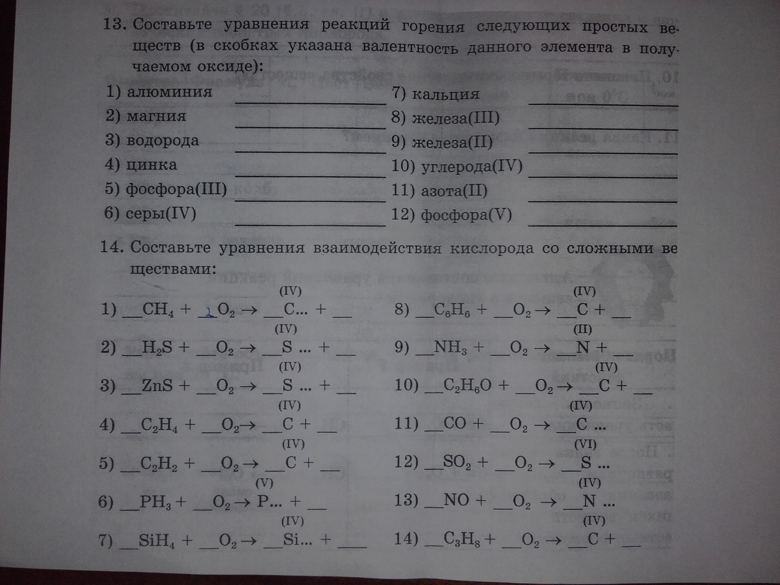 14. 1) CH4 + 2O2 = CO2 + 2H2O