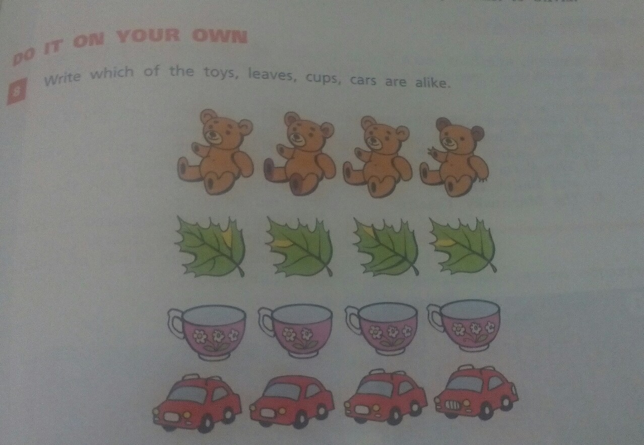 1. 1st and 2nd toy are alike. (1 и 3 похожи)