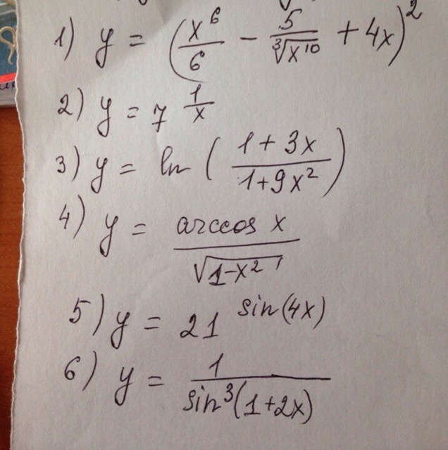 5)y' = 21^Sin(4x) *ln21 * Cos(4x) * 4