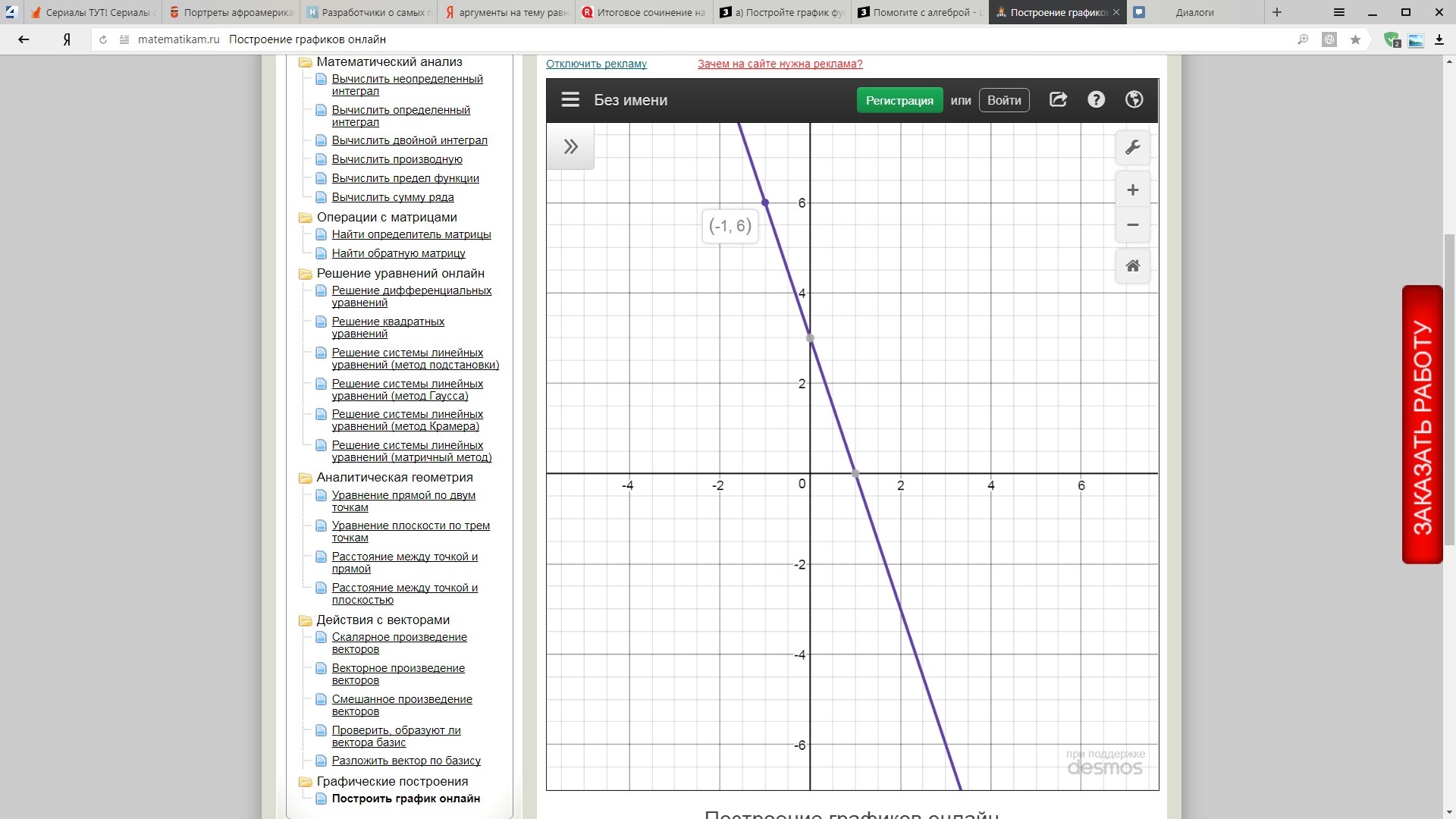 а) Постройте график функции y=-3x+3