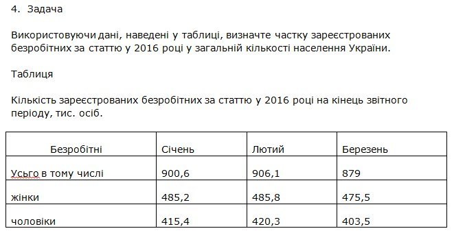 Використовуючи дані, наведені у таблиці, визначте частку зареєстрованих безробітних за статтю у 2016 році у загальній кількості населення України.