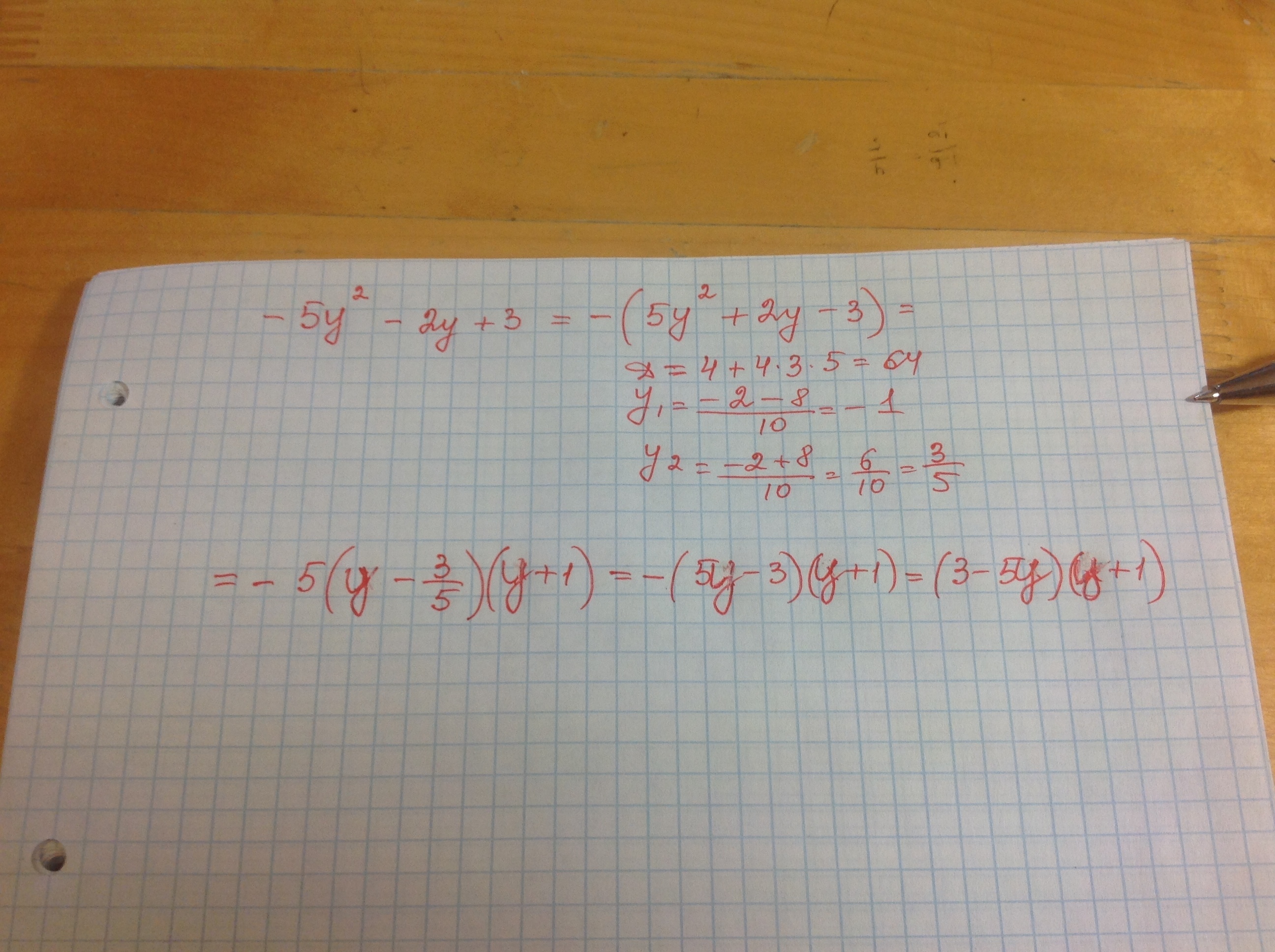 Решение смотри на фото -5y^2-2y+3=(3-5y)(y+1)