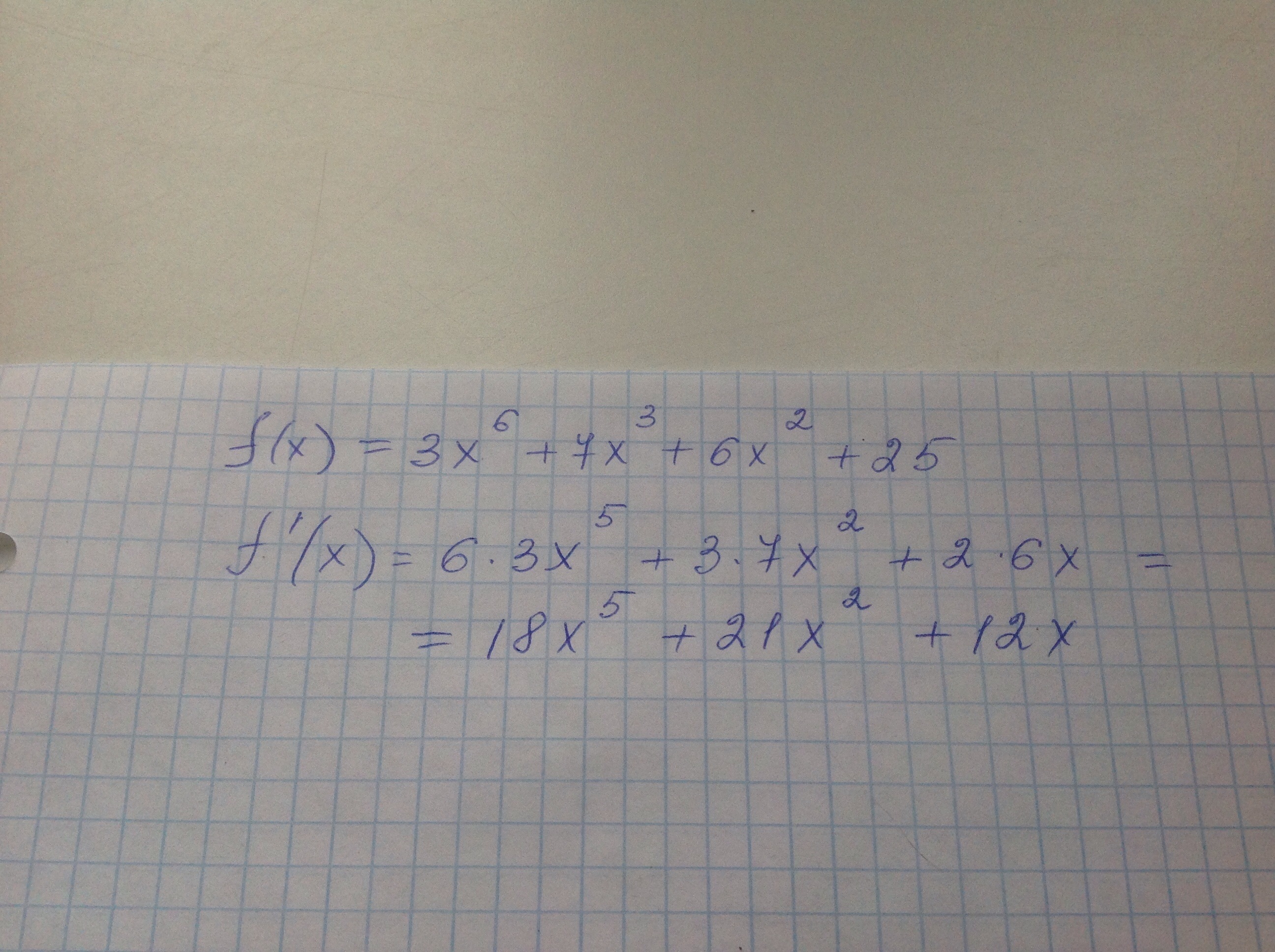 помогите f(x)=3x^6+7x^3+6x^2+25 найти производную функцию