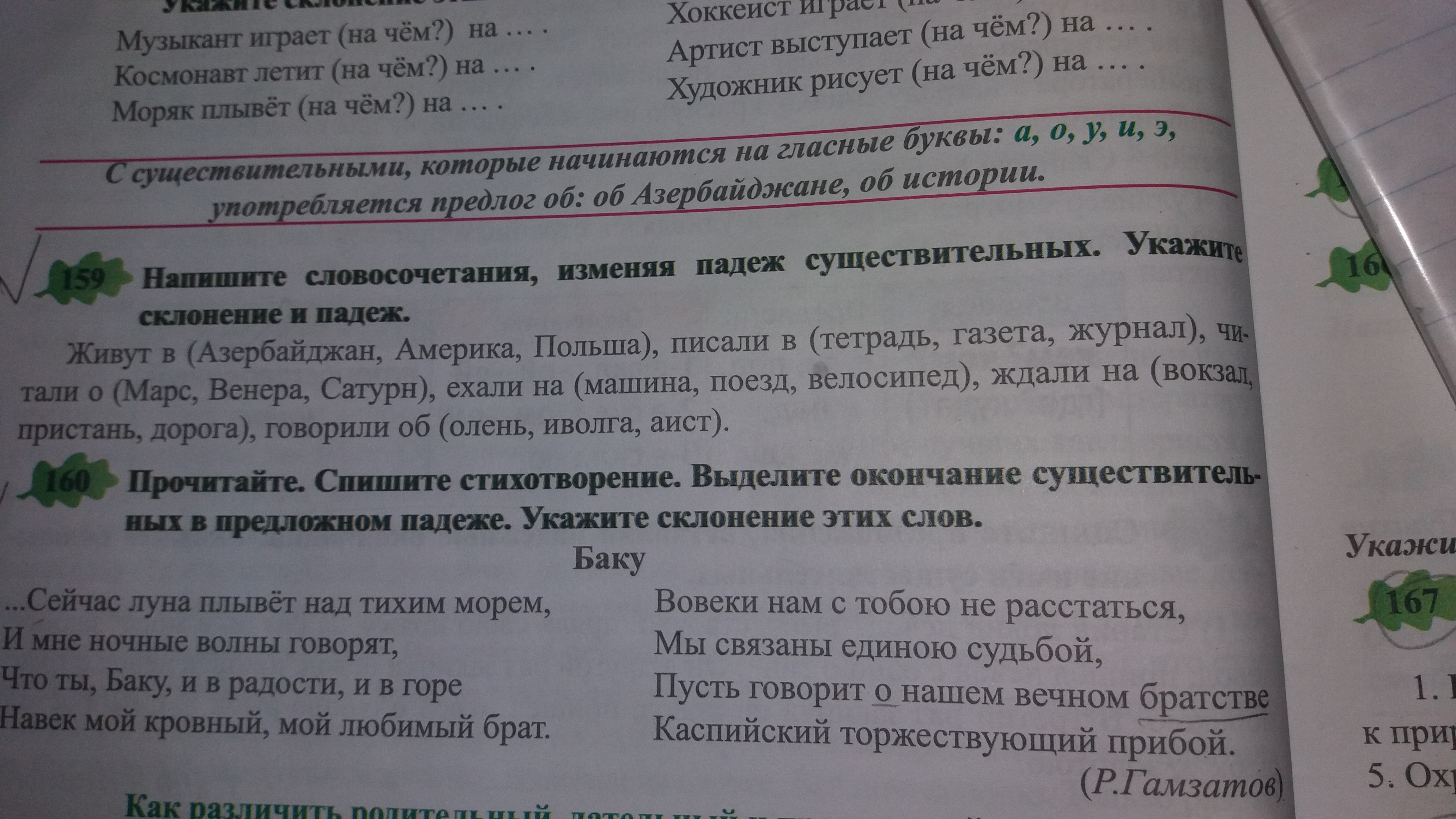 Привет ребята. Я 159 упр поняла только 1 не поняла. Там нужно 1 выбирать или все? Например живут в азер, амер и т.д нужно так писать или выбирать один? Вот так один: живут ы Америке. Короче можете подсказать пж?