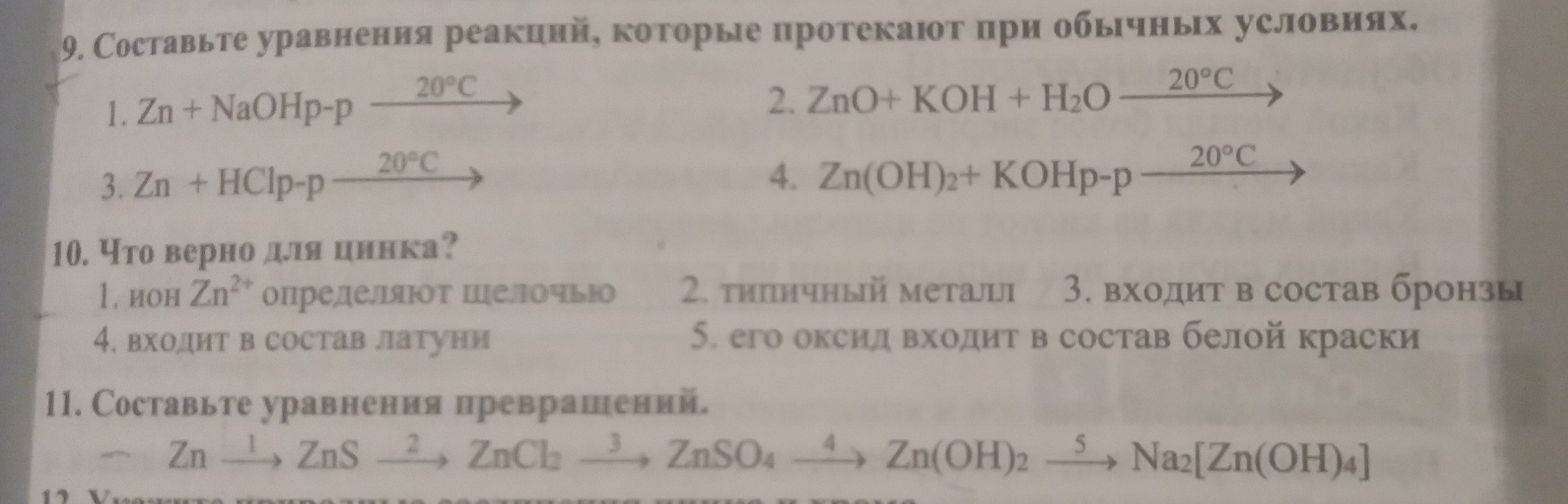 4)Zn(OH)2 + 2NaOH = Na2[Zn(OH)4] в растворе