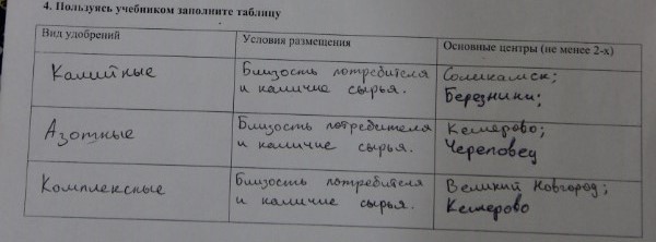 Вид удобрений | Условия размещения | Основные центры (не менее 2-х)