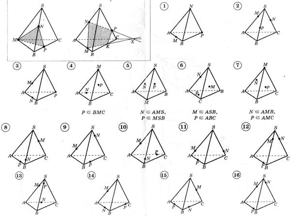 поомогите построить сечения под номерми 8,13,14,16