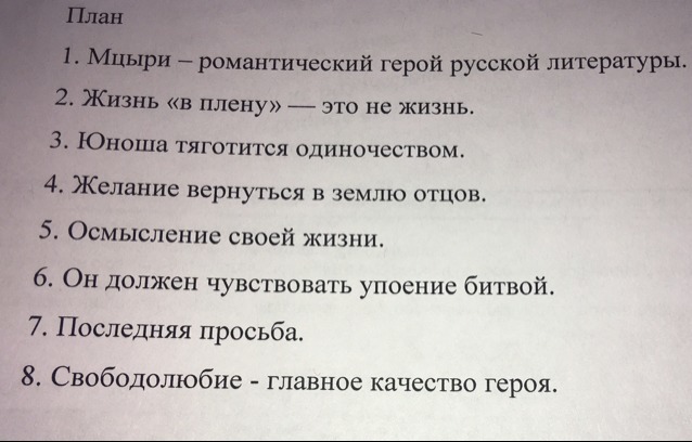 Написать сочинение по плану, произведение Лермонтова "Мцыри" 8 класс