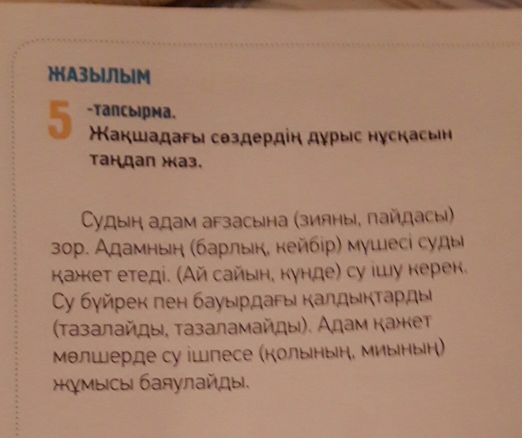 1. Пайдасы, 2. Барлык, 3. Кунде, 4. Тазалайды, 5. Миынын.