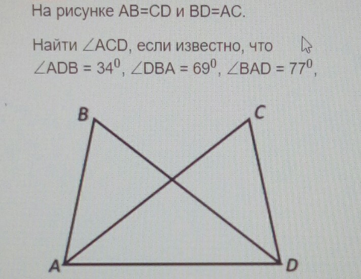 Угол ACD равен 69, так как треугольники равные