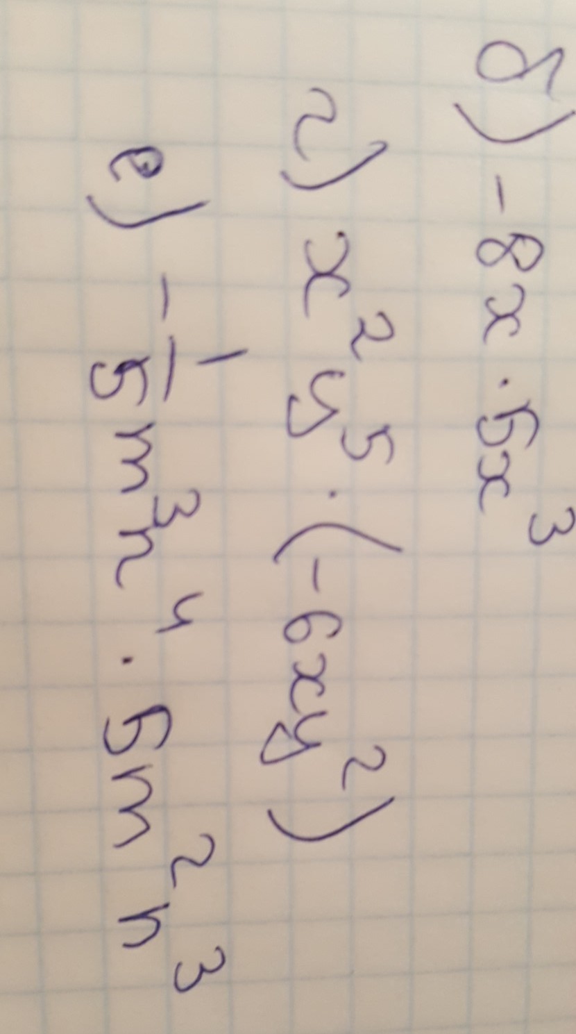 г.) х в 2 у в 5 * (-6ху в 2) = -6х в 3 у в 7