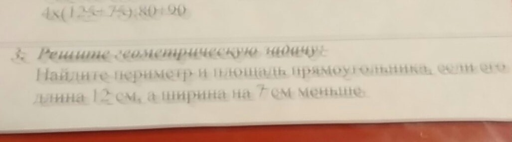 найдите периметр и площадь прямоугольника если его длина 12см а ширина на 7 см меньше.