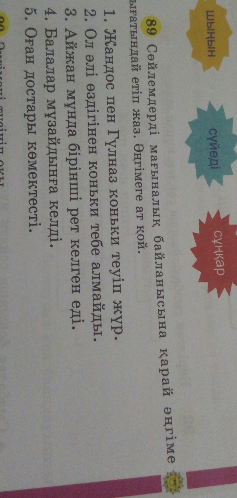 Жандос пен Гүлназ коньки тебуге барды . Бірақ ол əлі коньки тебуге үйренбеді. Сонда Айжан конькиге бірінші рет келген . Көп балалар тебуге келді . Достары көмек берді