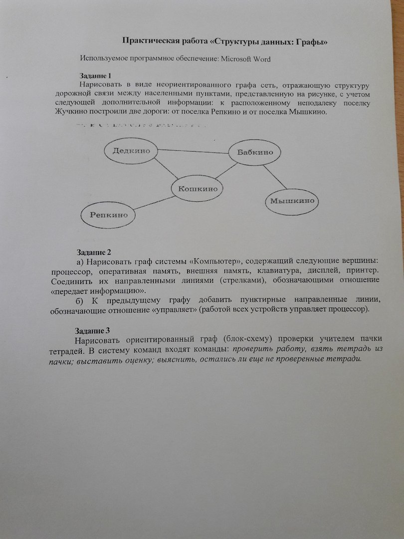 Тебе надо нарисовать всё , что написано во 2 задании по отдельности , и обозначить стрелками, которые связаны между собой , а 3 я не уверен , но как я понял , там нужно нарисовать огромным шрифтом как но компе , например (ВЫПОЛНИТЬ ВХОД) (ОТДАТЬ ТЕТРАДЬ) и т.д