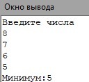 С помощью сокращенной формы оператора условия найти наименьшее из четырех заданных чисел. Помогите пожалуйста, написать программу.