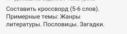 составить кроссворд (5-6 слов) жанры литературы. Пословицы. загодки 3 класс