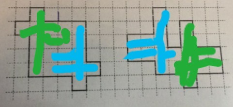Разрежьте фигуру с Лёва по линиям сетки на две равные части и покажите как из них сложить правую фигуру