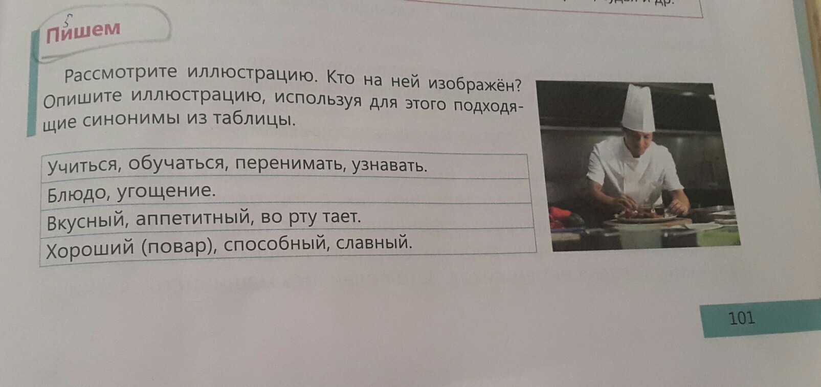 На иллюстриции изображён повар Описание иллюстрации: повар готовит для посетителей угащение это блюдо вкусное аппетитное прям во рту тает. Хороший повар был способным славным