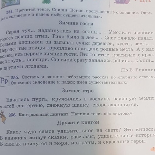 Началась пурга,последние листья еще кружились в воздухе и падали на озябшую землю,снег стелился чистой скатертью.Елки нарядились в снежные шапки,пурга скоро закончится.