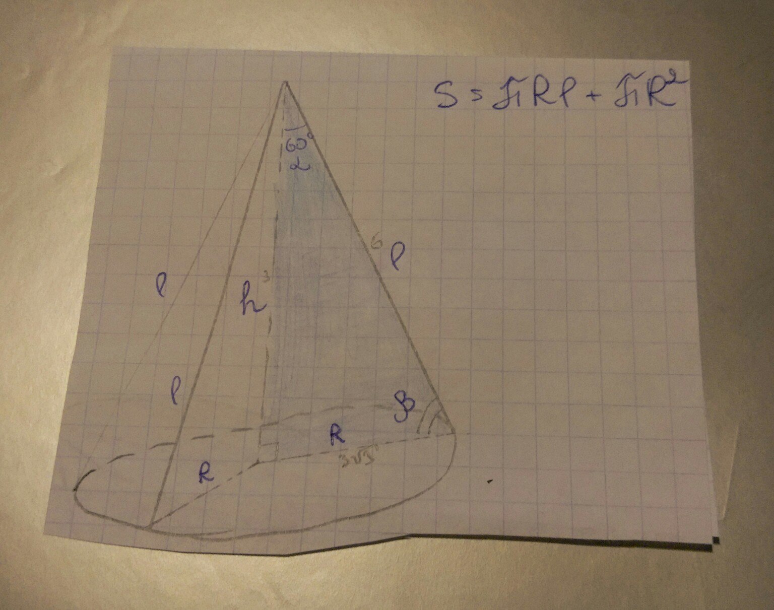 Sполн=π*3√3*6+π(3√3)²=18√3π+27π (см²)