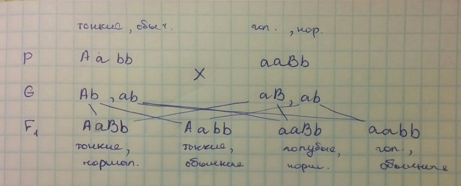 Получается дети по фенотипу могут быть с тонкими нормальными, с тонкими обычными, с голубовато-белыми нормальными, с голубовато-белыми обычными.