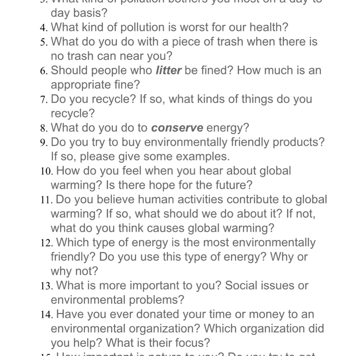 7.Yes, I do. I recycle paper, aluminum, plastic.