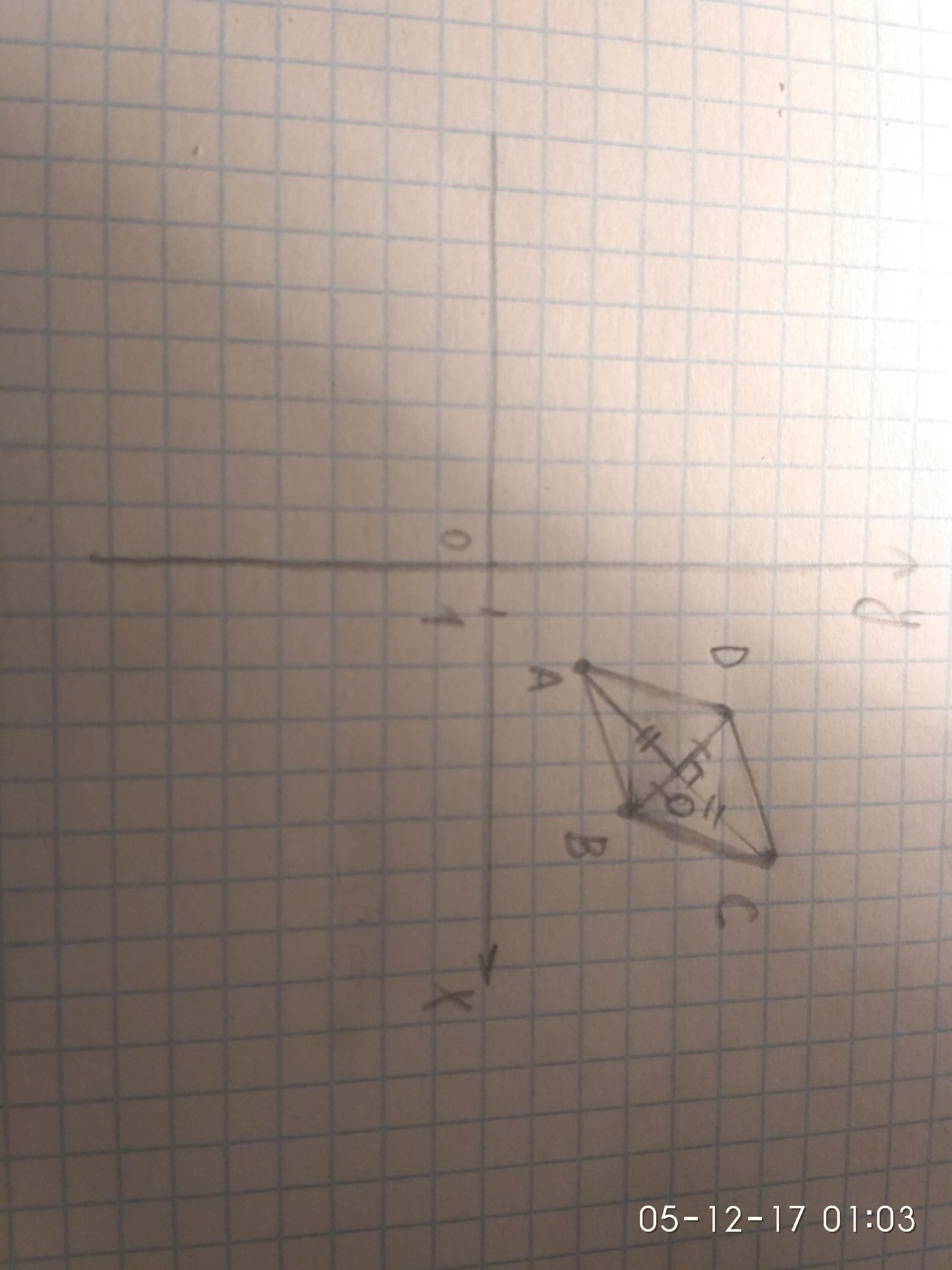 1) построили параллелограмм; 2) Видим, что у него все стороны равны; диагонали пересекают друг друга под прямым углом, также делятся точкой О пополам; видим на первом рисунке также, что ∆DOC=∆COB=∆AOB=∆DOA, следовательно перед нами ромб. Решение я описал во второй картинке, удачи!