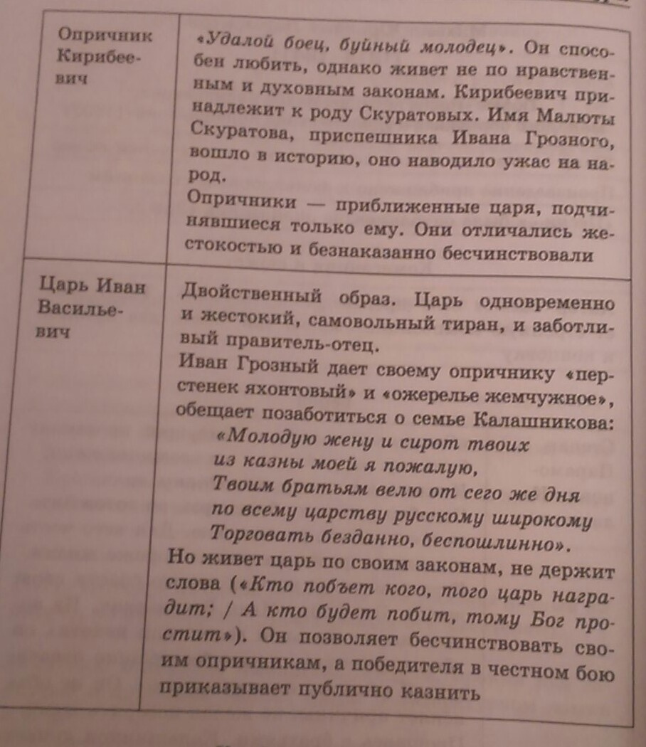 (Песня про царя Ивана Васильевича, молодого опричника и удалого купца Калашникова характеристика персонажей)