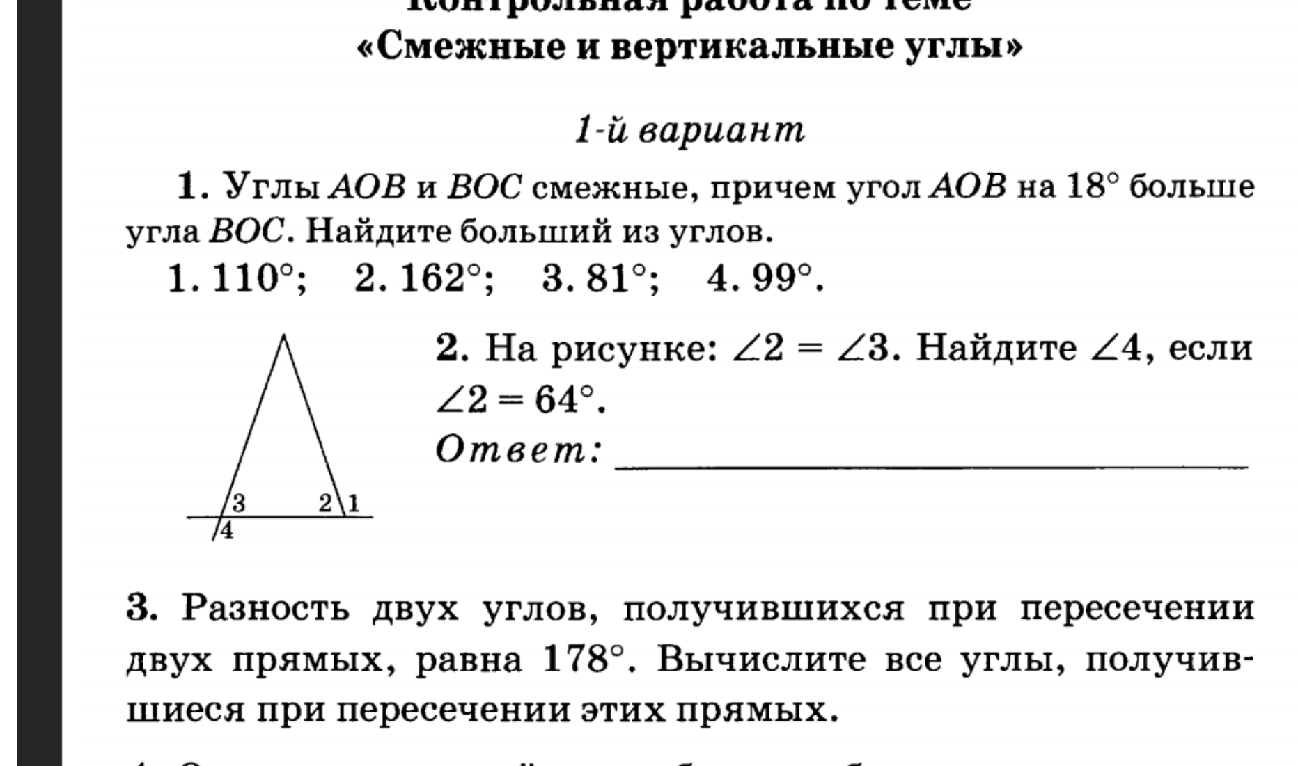 Т.к угол 2= углу 3 (по условию), то соответственно угол 3 =64°