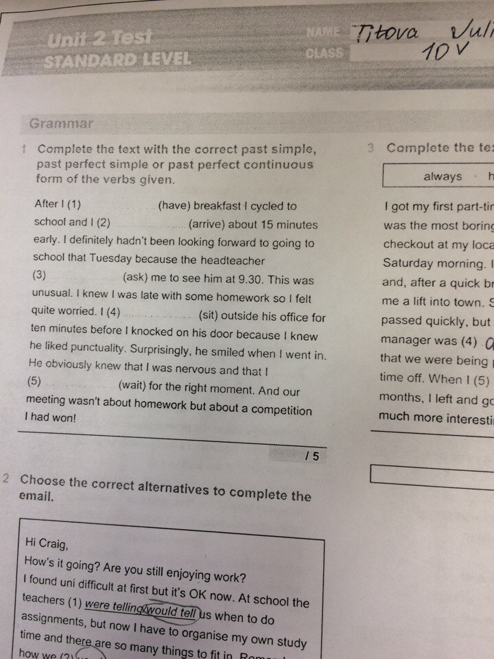 Had ,2. arrived,3.asked 4. Sited 5.was waiting .