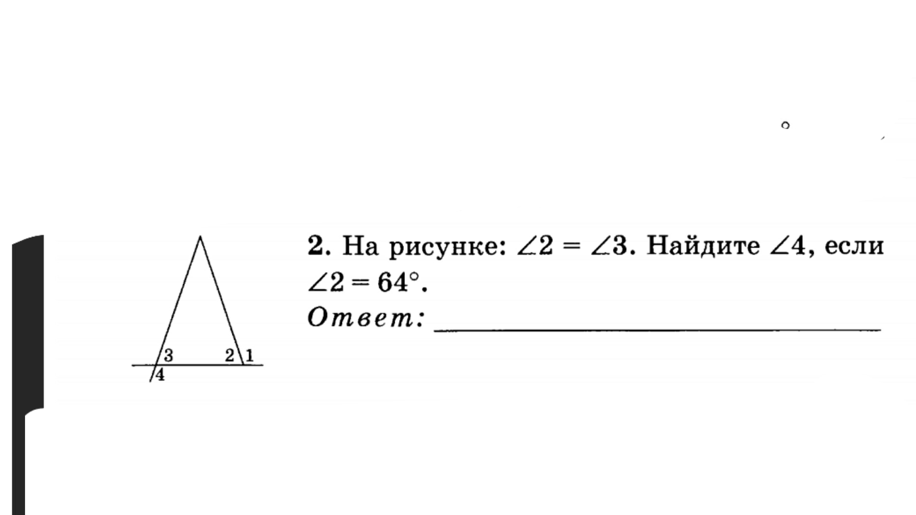 Так как L2 L3 рваные то треугольник равнобедренный, угол три и четыре составляет вертикальные углы