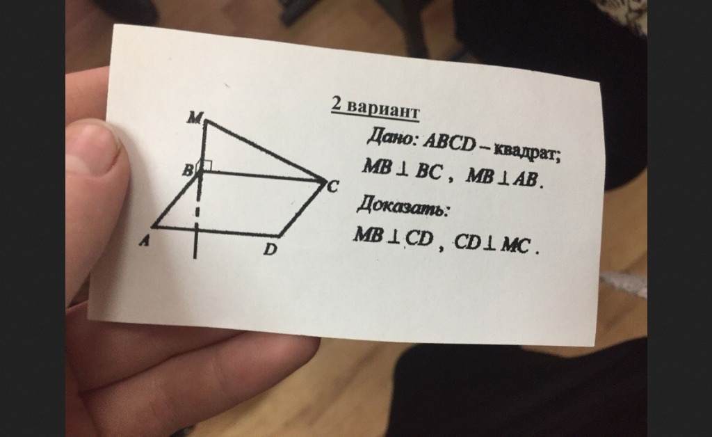 Следовательно по следствию из теоремы о скрещивающихся прямых (а МВ и CD являются таковыми) МВ перпендикулярно CD.
