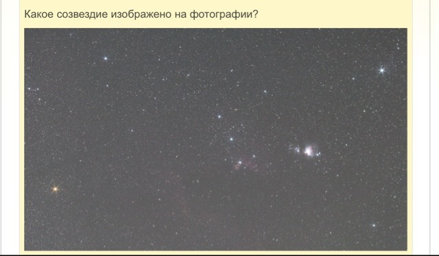 Орион. Пояс Ориона хорошо различим как и Туманность Ориона.