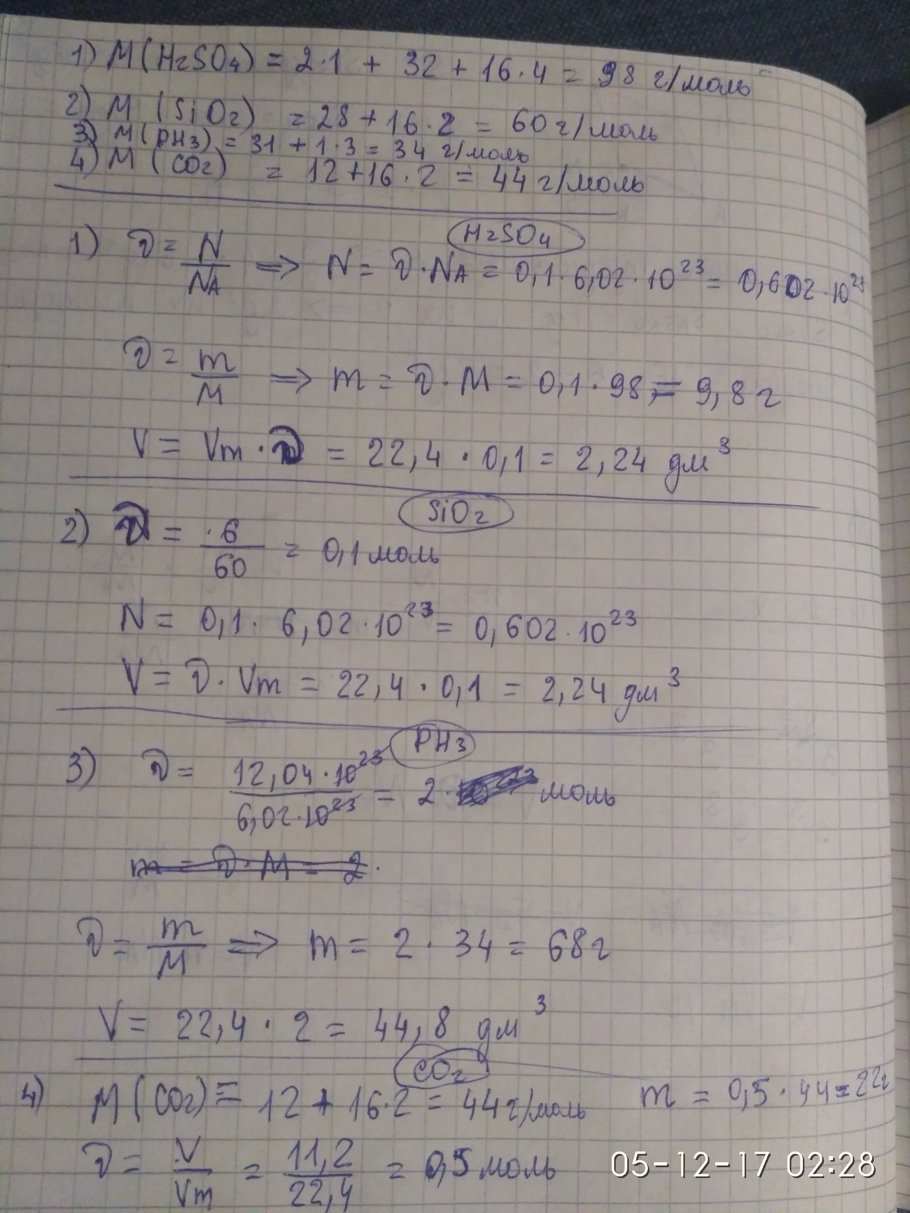 Надеюсь понятно, объем молярный =22,4дм^3, ню(в молях)- химическое количество, Молярную массу(М) как искать: открываешь таблицу менделеева и цифра сверху элемента( записана десятичной дробью) и есть молярная масса, округляешь ее. Чтобы найти Молярную вещества ты умножаешь массу элемента на количество атомов и складываешь в общем молярные массы