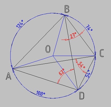 ∠ABC = 1/2(108+54) = 54+27 = 81°