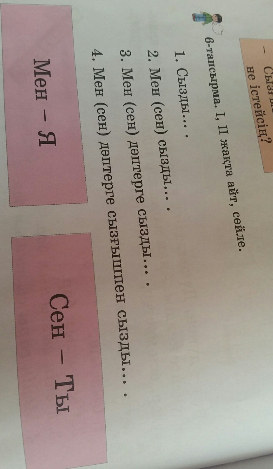 мен даптерге сызгышпен сыздым- сен даптерге сызгышпен сыздын.
