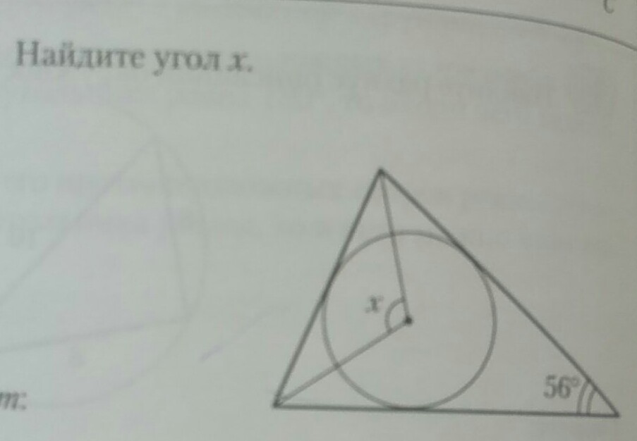линии, идущие к точке х делят углы которые по 62 градуса на равные, то есть в трекгольнике, в котором лежит точка х будет 2 одинаковых угла по 62 градуса,разделенныех по 2