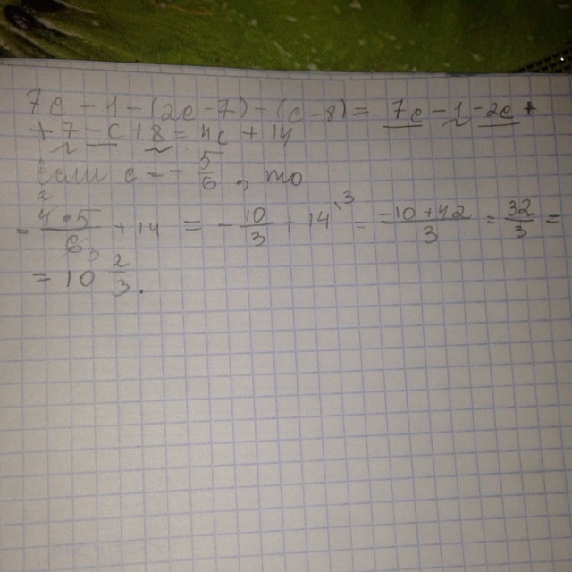 упростите выражение 7с-1-(2с-7)-(с-8) и вычислите его значение при с=-5/6