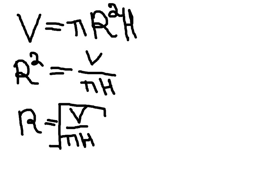 Обьём цилиндра вычисляется по формуле V=πR²H,где R— радиус основания, H—высота цилиндра.Выразите переменную R через V и H.