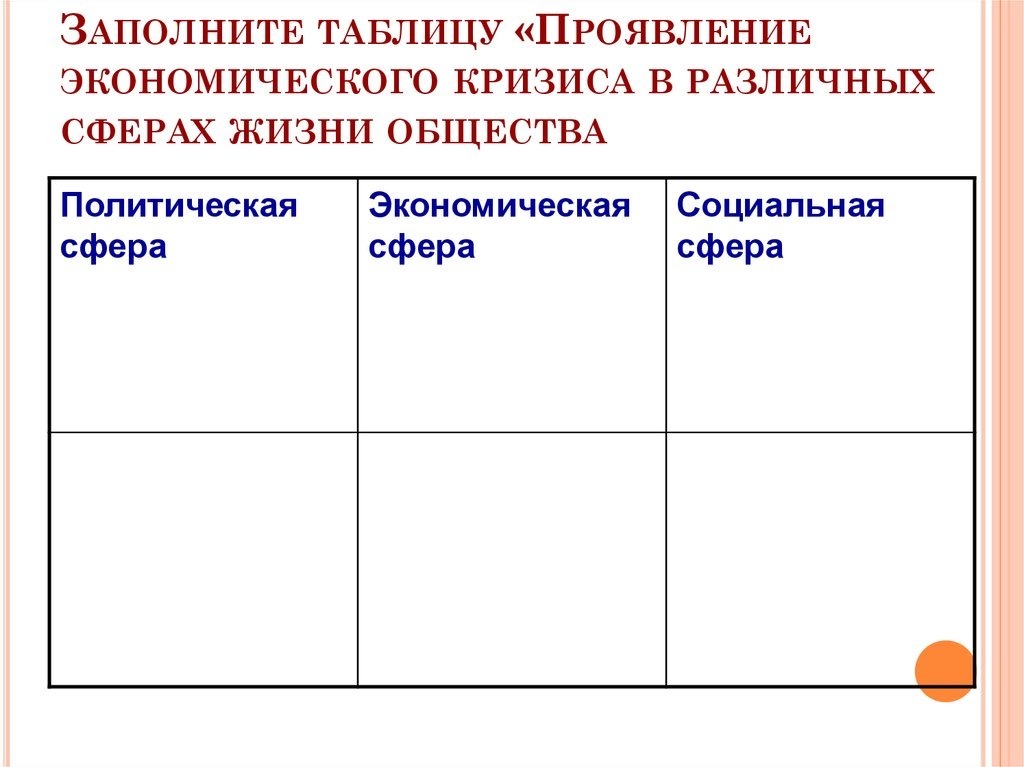 2. Экономическая сфера: Массовое закрытие промышленных предприятий, разорение банков, инфляция, уничтожение части продукции промышленности и сельского хозяйства.