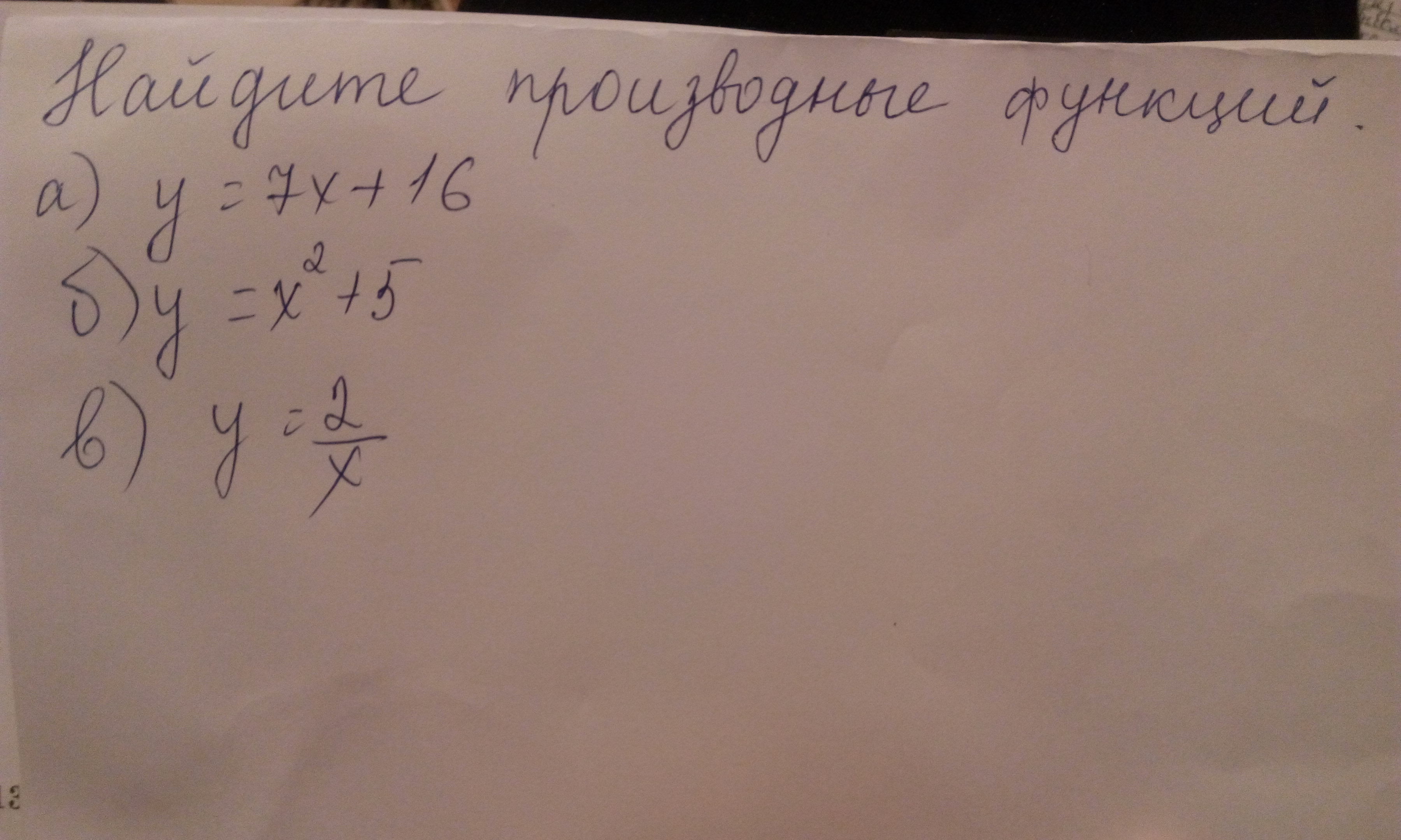 a) y '=(7x + 16)' = (7x)' + 6' = 7 + 0 = 7