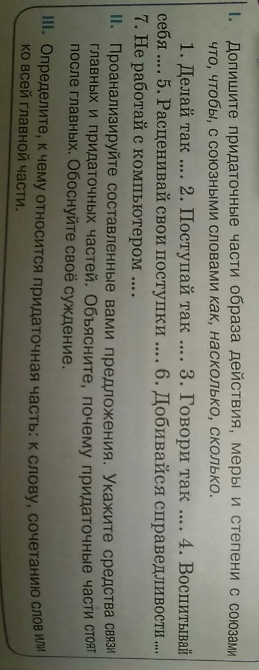 допишите придаточные части действия ,меры и степени с союзами (что , чтобы) и с союзными словами (как, насколько, сколько)