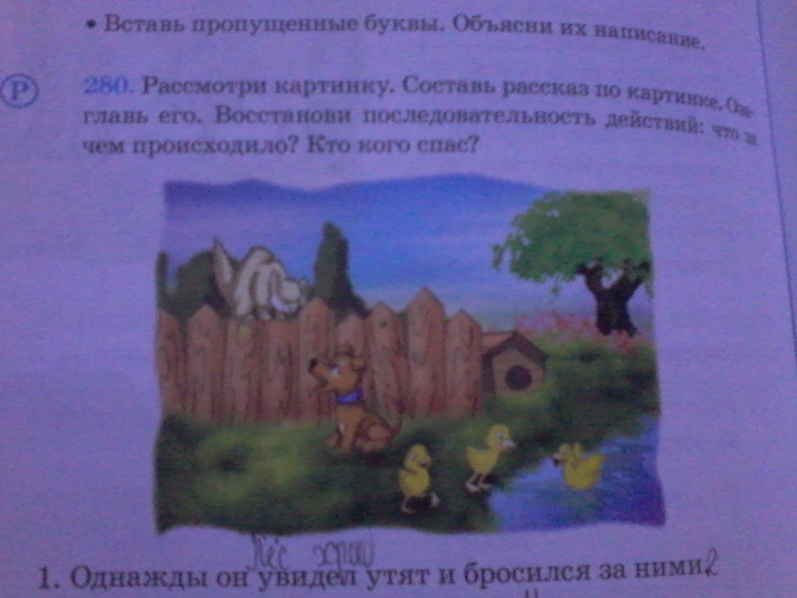 Однажды три весёлых цыпленка вышли погулять на свежий воздух. Они играли, скакали, плясали и веселились так, что даже не заметили, что к ним по забору подкрадывается огромная кошка! Она уже выпустила когти, вз(твёрдый знак)ерошилась, как вдруг раздался звонкий лай! Откуда не возьмись появляетс Бобик-щенок, которому хозяева доверили охранять цыплят. Он залаял и напугал кошку , которая охотилась за цыплятами. Всё кончилось хорошо только благодаря геройству собаки, она спасла цыплят.