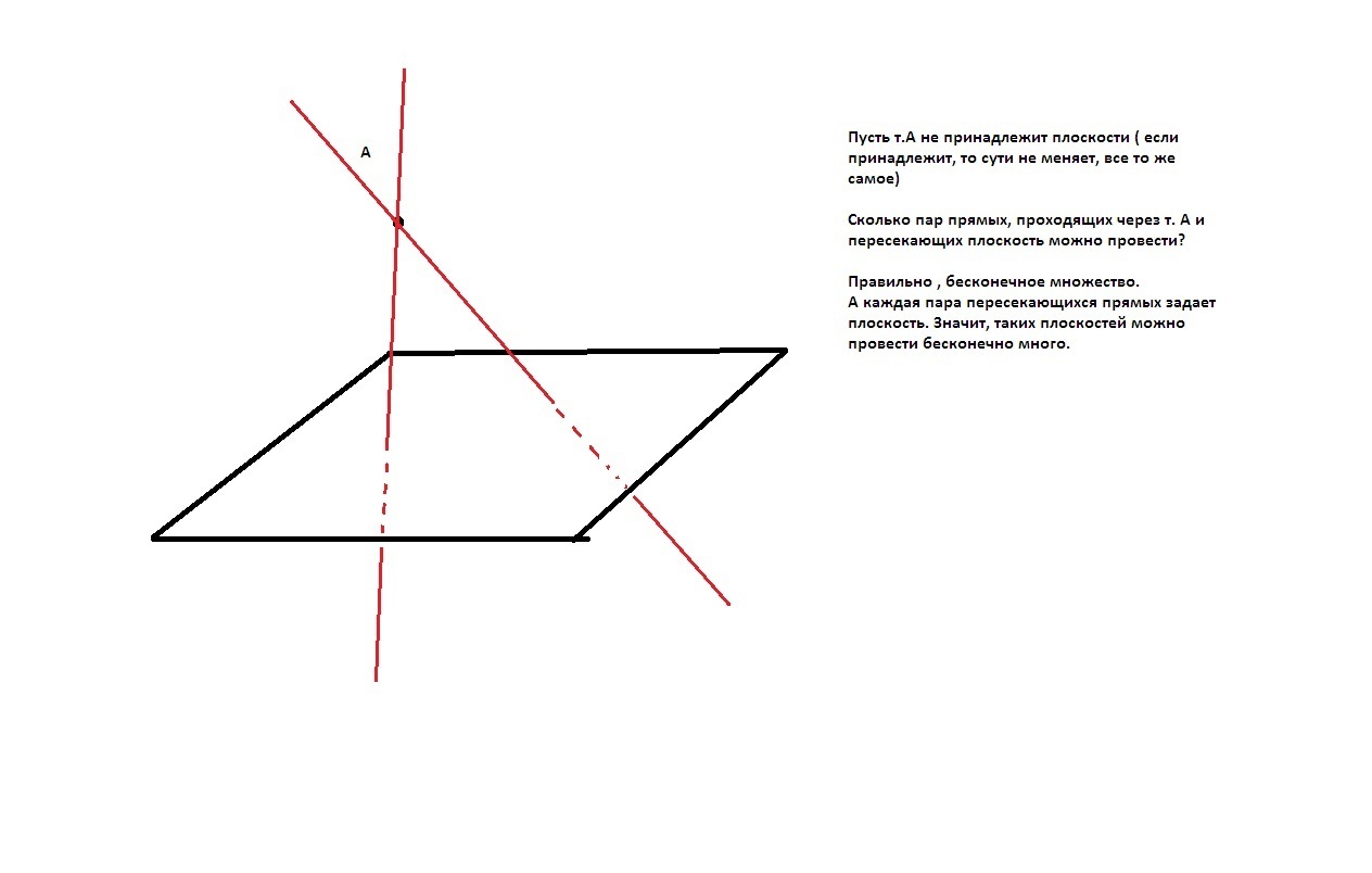 Скільки можна провести через дану точку А площин,які перетинають дану площину альфа?Відповідь обґрунтуйте.