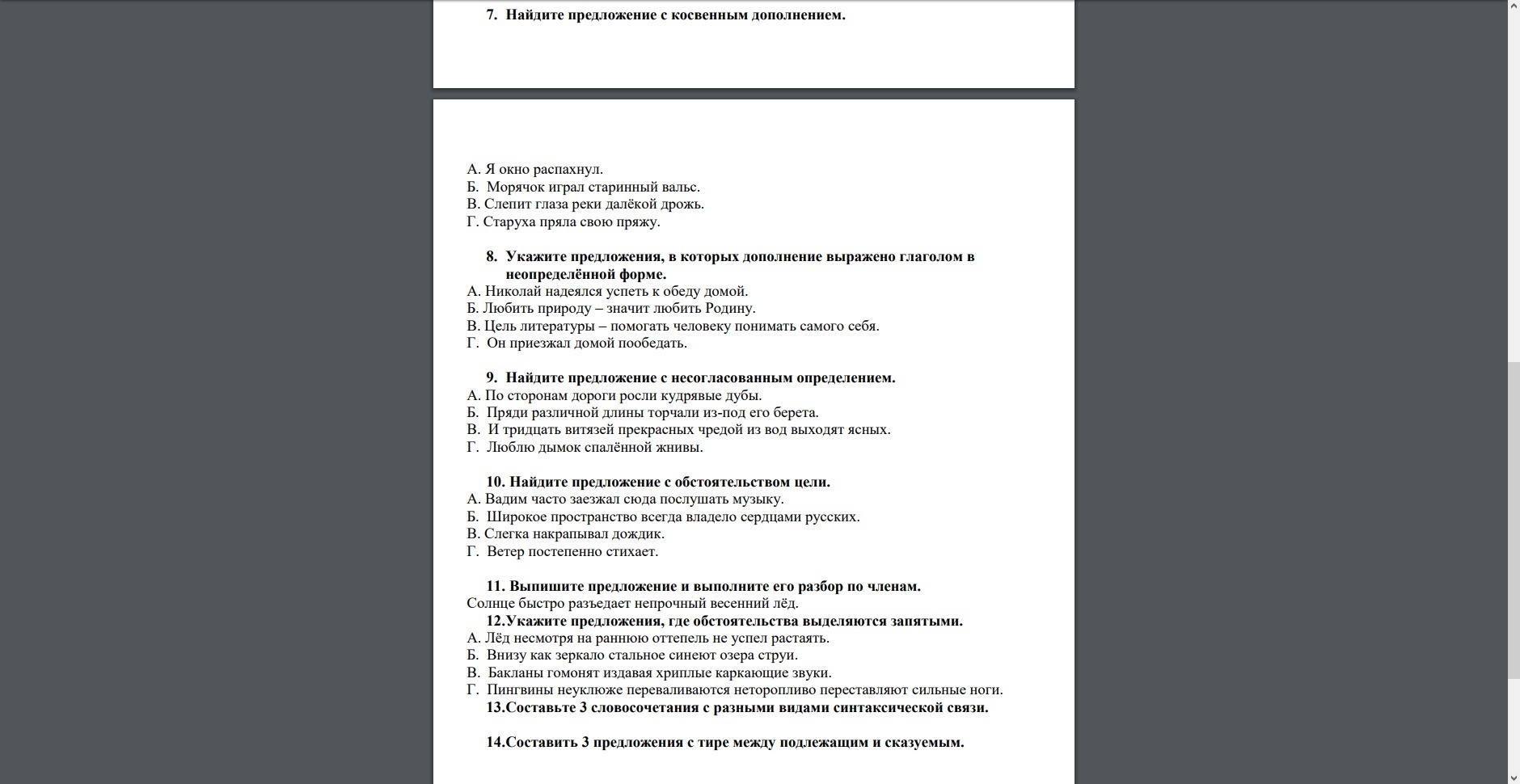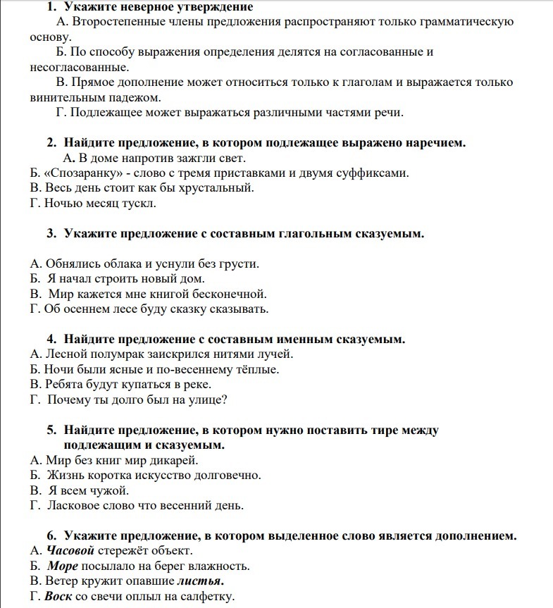 1-а,2-б, 3-г, 4-б, 5-а, 6-в, 7-г, 8-а,г,9-г, 10-?, предложение сам разберёшь, 12-а,б. 13.Москва-великий русский город. Эверест - самая высокая гора. Жизнь прожить-не поле перейти.