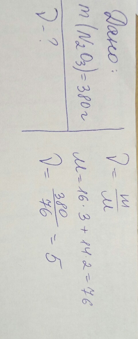 Определите количество вещества , содержание в оксиде азота ||| (N2O3) массой 380 г.