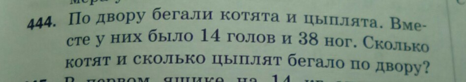 конечно нелогичная задала если у котят и цыплят внезапно выросли ноги а не лапы ну да ладно